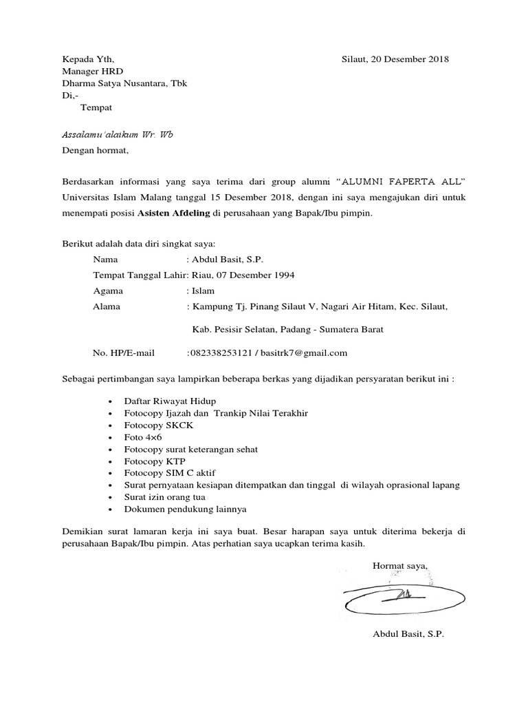 Contoh Surat Lamaran Kerja - Berikut contoh surat lamaran pekerjaan yang bisa kamu download file dokumennya. Berikut akan kami paparkan tips membuat lamaran kerja Anda menjadi semakin Saat Anda membuat surat lamaran, usahakanlah agar membuat format tulisan yang benar. Contoh surat lamaran pekerjaan berikut ini kami sajikan kepada para pelamar atau pencari kerja agar lebih mudah dan cepat mengajukan lamaran sesuai dengan posisi jabatan atau pekerjaan yang ditargetkan.